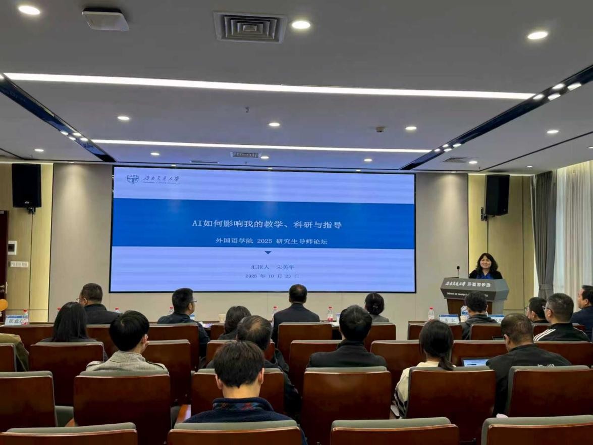 为助力海外青年教师提升科研与育人能力,学院特意邀请宋美华教授和成蕾副教授分享科研与教学经验。宋美华教授结合教学科研实例,深入剖析了人工智能在教学优化、科研辅助及学生指导方面的实践价值,提出“对AI怀敬畏之心,亦坦然正视自身局限”的理性认知。成蕾副教授立足文明互鉴与跨文化视角,系统深入地解读外语学科文学研究新范式,并详尽介绍了学院文学团队的最新成果。